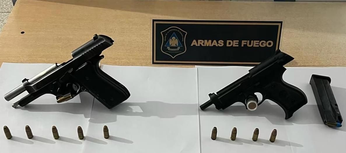 Al mismo tiempo, otros agentes localizaron el Citröen cerca de la zona. Al revisar el interior, encontraron dos pistolas calibre 9 milímetros, utilizadas para cometer los asaltos.