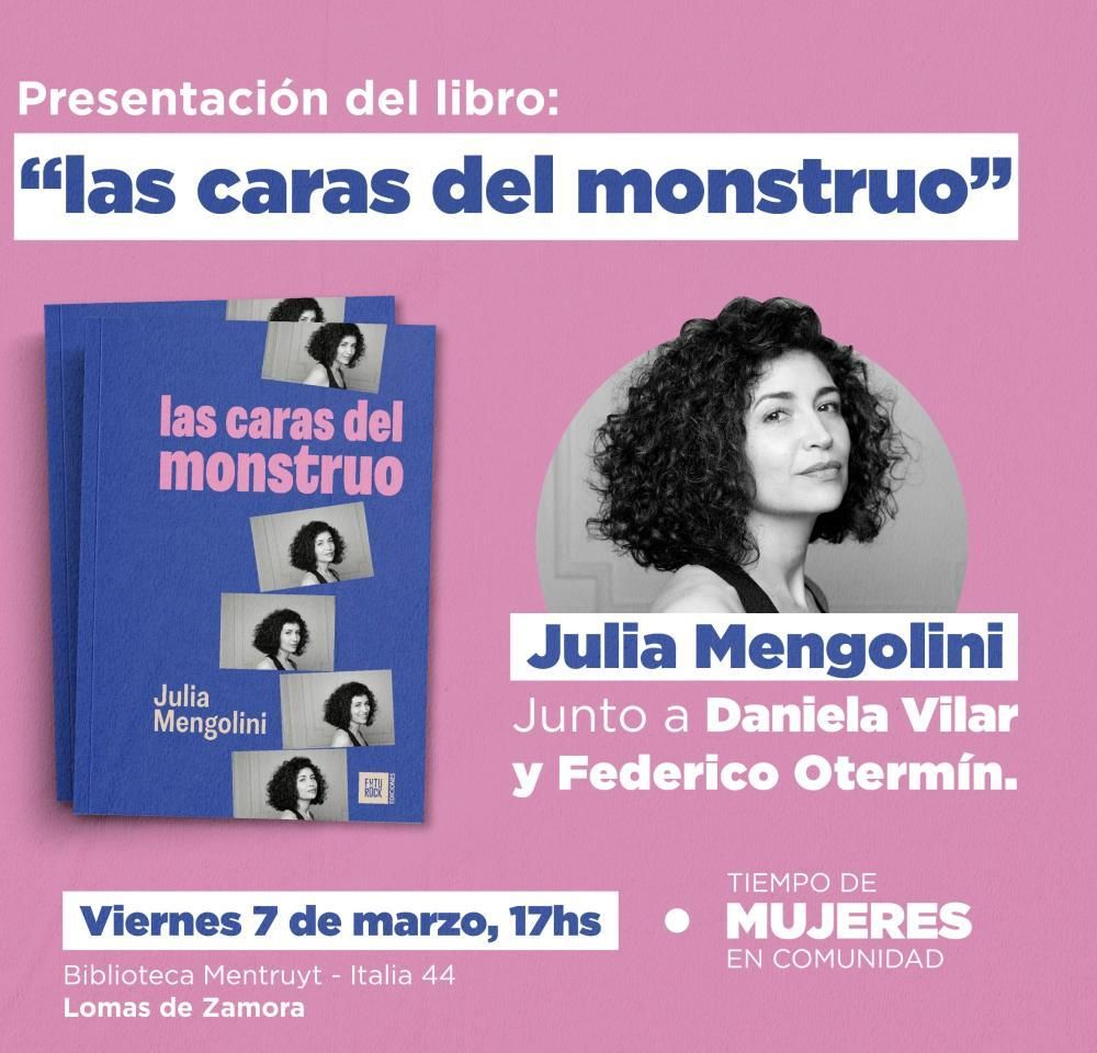 Este viernes, a las 17, la periodista Julia Mengolini presentará en Lomas su primer libro "Las caras del monstruo", como parte del ciclo Tiempo de Mujeres en Comunidad, impulsado por el Municipio.