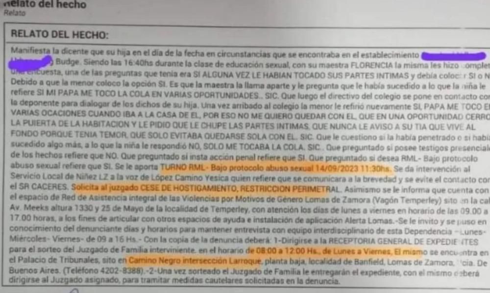 En primer lugar, la niña le confesó la pesadilla a su maestra, durante una clase de educación sexual desarrollado en agosto de 2023, y luego dio más detalles en Cámara Gesell, ya en el marco de la investigación.