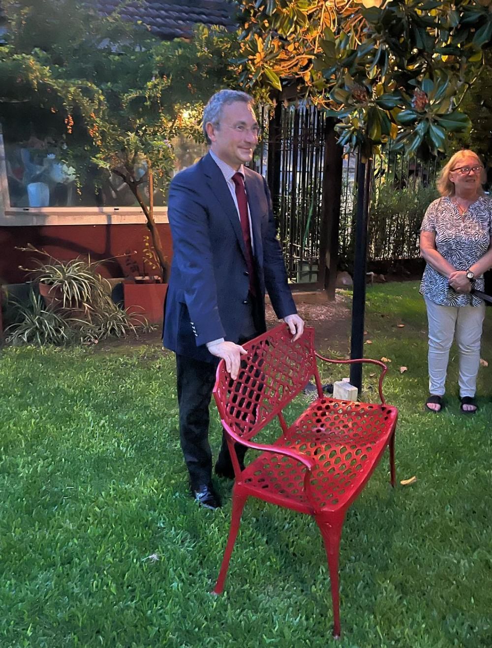 "Con la instalación del banco rojo en nuestra sede pretendemos afirmar y difundir los valores del respeto a la vida y a la dignidad humana. En nuestros países, las mujeres, las adolescentes y las niñas todavía sufren abusos y violencia hasta la muerte y esto es inaceptable. Luchemos juntos para defender los derechos básicos de todo ser humano, independientemente de su género e inclinaciones", dijo el Agente Consular Massimo Palozzi.