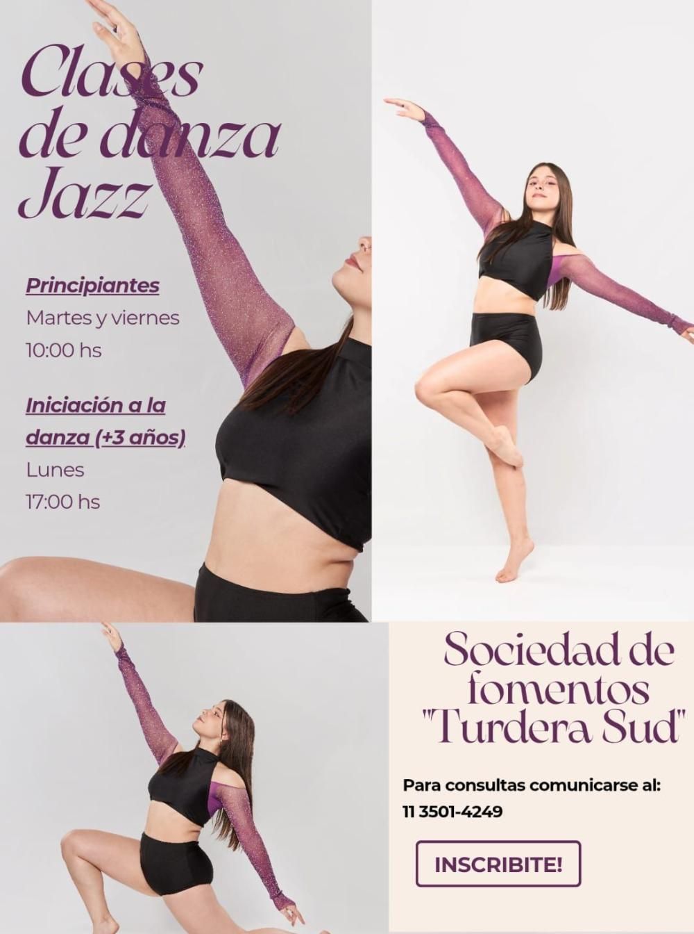 Una nueva alternativa de este año son las clases de danza jazz para principiantes, los martes y viernes a las 10 y para iniciación a la danza para los menores de 3 años en adelante, las clases se dictan los lunes a las 17. Para consultas al: 1135014249