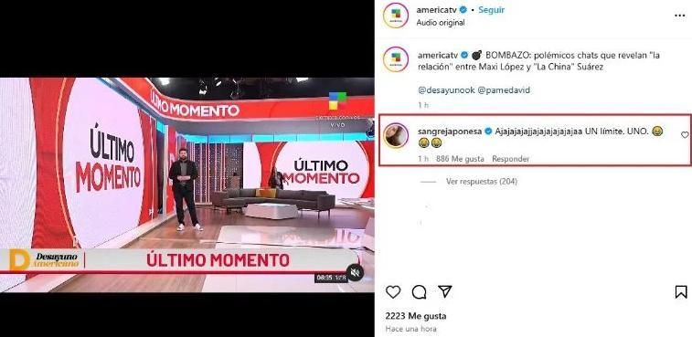 En Instagram comentó un video de la cuenta de América TV en el que se hablaba del tema y escribió: "Ajajajajajjajajajajajajaa UN límite. UNO", acompañado de varios emojis de risa.