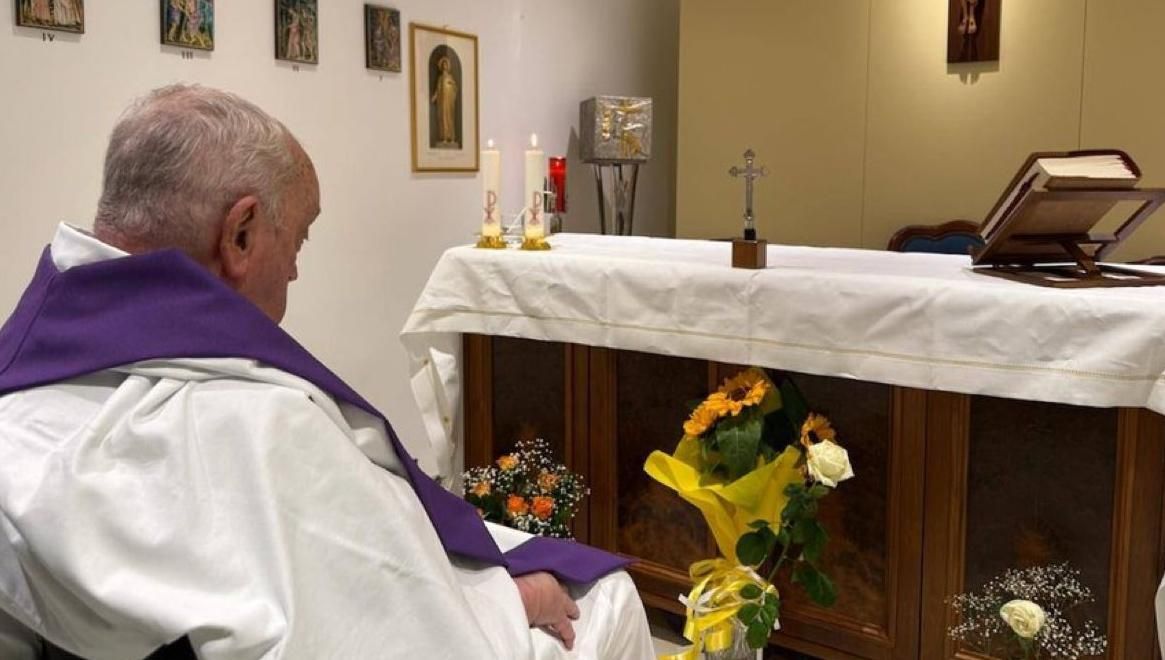"Esta mañana #PapaFrancesco concelebró la Santa Misa en la capilla del apartamento del décimo piso del Policlínico Gemelli", publicó el sitio Vatican News junto a la fotografía del Pontífice.