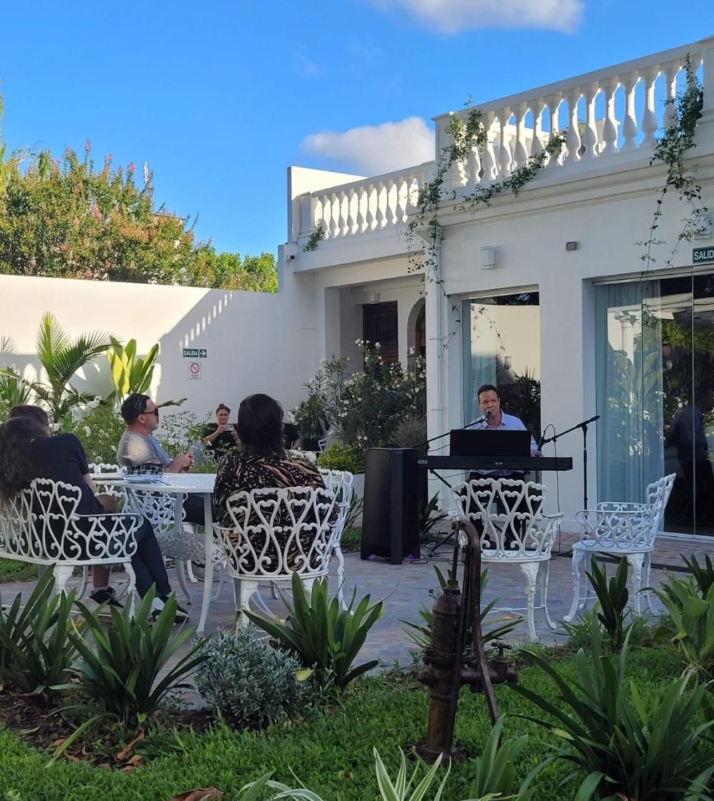 Él canta y toca el piano, en general música popular, pero también temas de jazz, blues, etc. Dictó clases en USA y tocaba en restaurantes. Después se mudó a Londres y ahí tocó en hoteles 5 estrellas durante 10 años. Después se mudó a China y tocaba en una banda el teclado y también cantaba. Además, hacía presentaciones en embajadas. Luego, empezó a tocar en cruceros, en el piano bar que fue donde conoció a Flor, quien lo llevó a vivir esta experiencia en el sur del mundo.