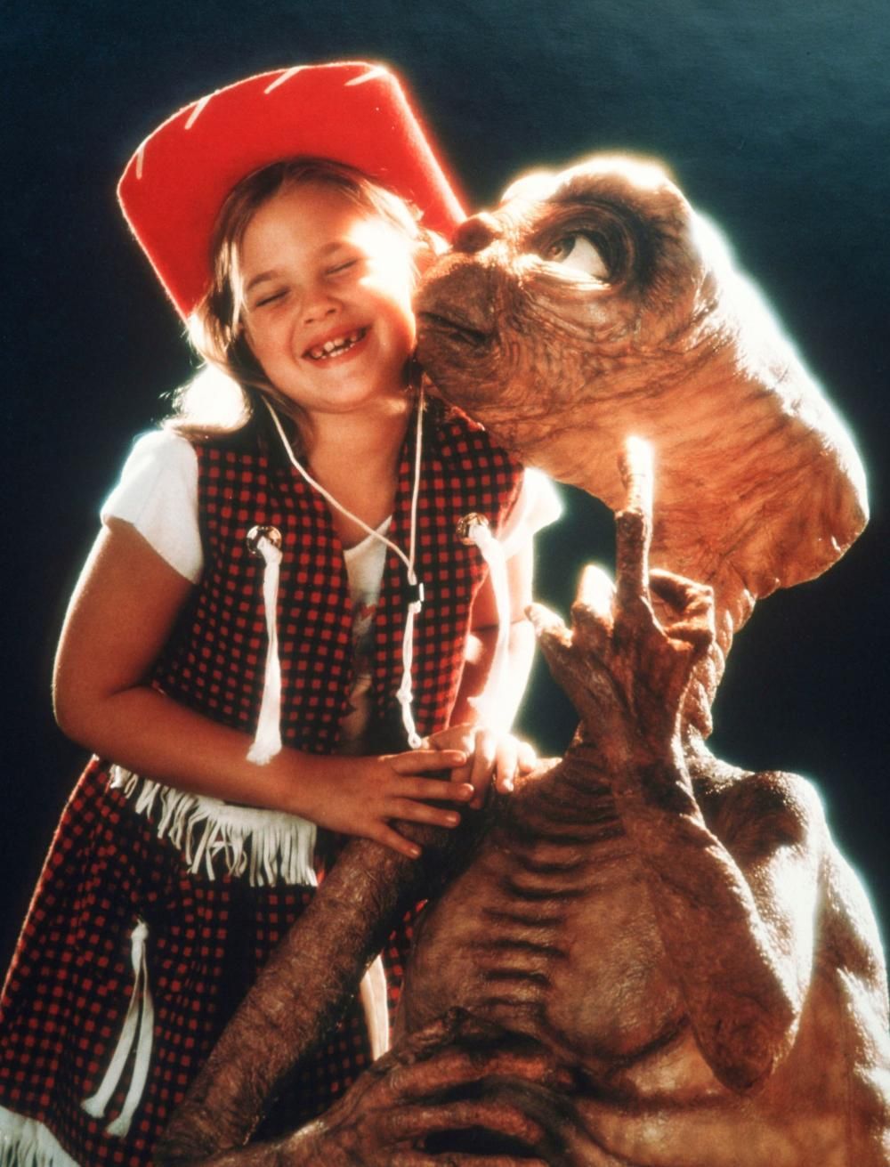Este modelo, de poco menos en un metro de altura, es el que protagoniza la "escena del armario", en la que E.T. se disfraza entre los peluches de una jovencísima Drew Barrymore.