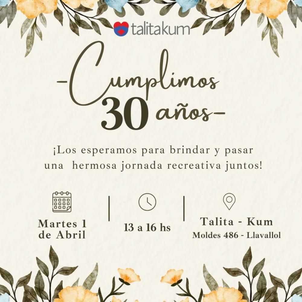 "Para este aniversario tan especial, porque se trata de tres décadas de mucho trabajo vamos a realizar primero un brindis institucional a las 13 y luego vamos a dar comienzo a la jornada", detalló Enrique Muntaabski, director del taller protegido Talita Kum.