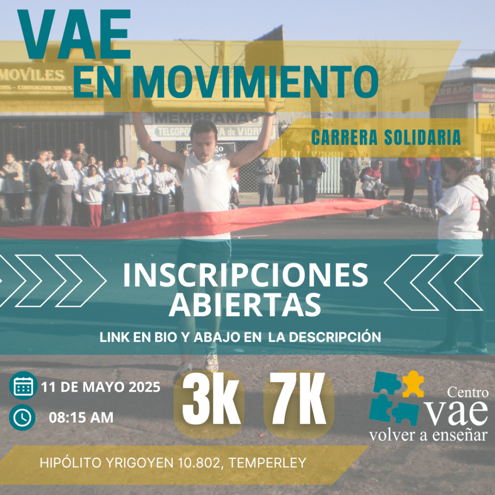 La Asociación Civil Volver A Enseñar (V.A.E.), una institución lomense que trabaja con personas con discapacidad, llevará a cabo el domingo 11 de mayo una carrera inclusiva que tendrá como finalidad poder concientizar, movilizar y comprometer a la comunidad en una actividad deportiva para hacer visible "que detrás de cada diagnóstico hay una persona y una familia". Ya está abierta la inscripción.