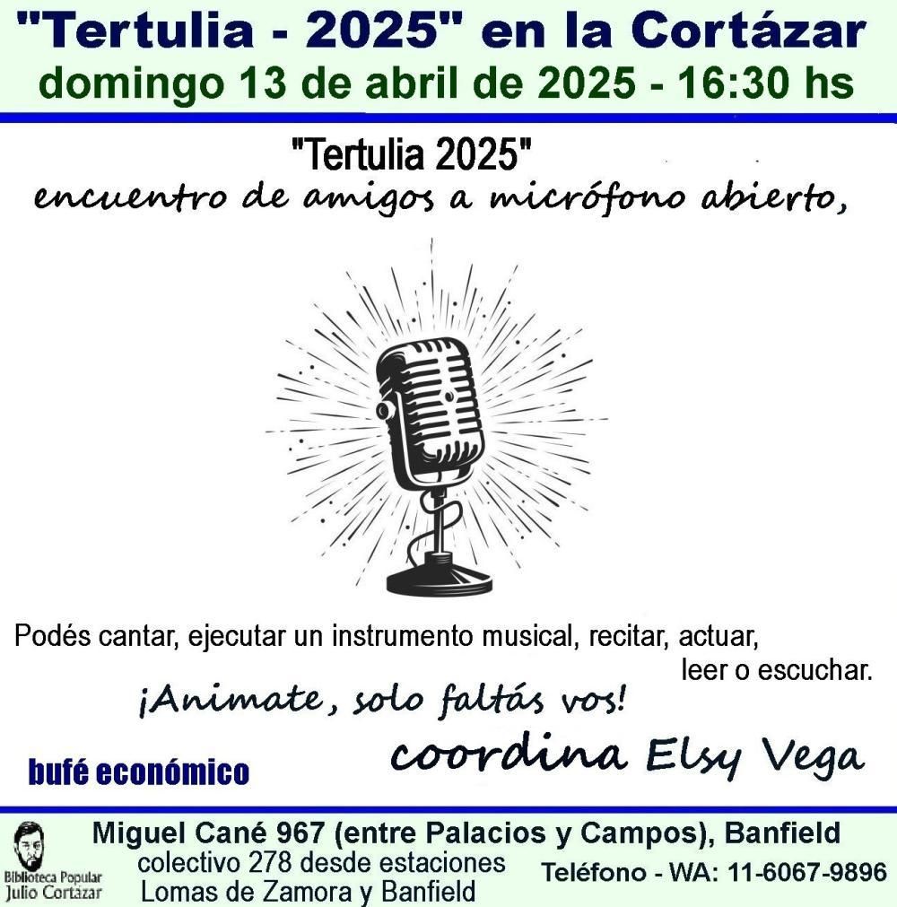 Una oportunidad de expresarse. Esto es lo que los vecinos encontrarán en la Biblioteca Popular Julio Cortázar de Lomas, que invita a un encuentro netamente creativo a "micrófono abierto" para todos los que quieran compartir algún talento.