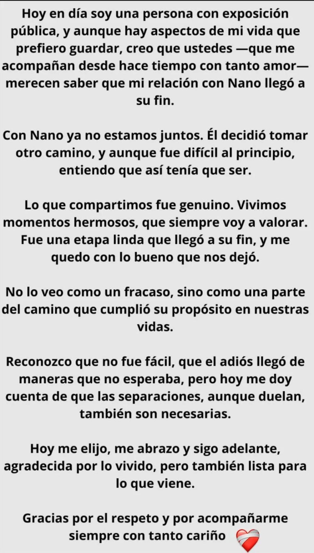 "No lo veo como un fracaso, sino como una parte del camino que cumplió su propósito en nuestras vidas. Reconozco que no fue fácil, que el adiós llegó de maneras que no esperaba, pero hoy me doy cuenta de que las separaciones, aunque duelan, también son necesarias", siguió.