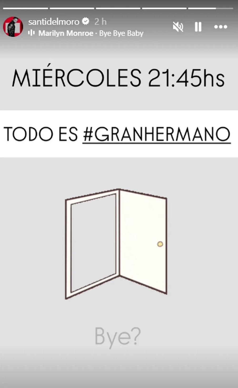 A través de sus historias del Instagram, el conductor del reality adelantó en concreto: "Miércoles, 21.45. Todo es Gran Hermano. Bye?".