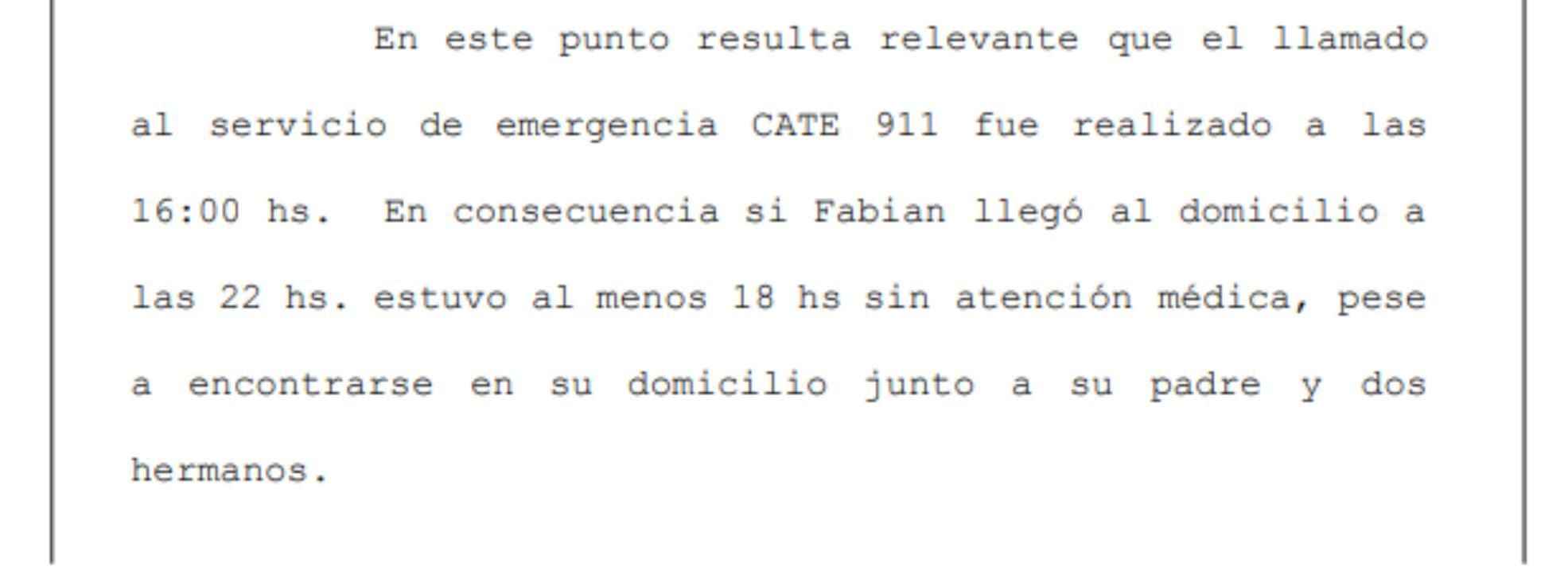 De acuerdo al informe presentado por los peritos forenses al fiscal titular de la UFI 12 de Lomas, José Luis Juárez, los imputados esperaron más de 15 horas en avisar a las autoridades para solicitar asistencia. Durante todo ese tiempo, lo ignoraron e hicieron su vida normal.