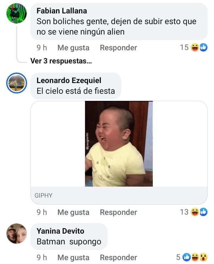 Las publicaciones no tardaron en llenarse de comentarios de los propios vecinos que, atónitos ante la situación, dieron su versión de los hechos. Desde una posible fiesta o la presencia de reflectores en la zona hasta la "Batiseñal" y la llegada de los marcianos fueron algunas de las divertidas hipótesis.