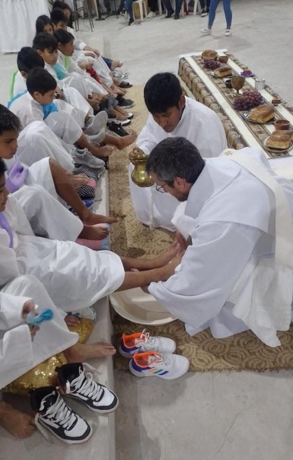 Pocos días después, el jueves Santo, se conmemora lo que se conoce en general como la última cena de Jesús. "Allí hacemos memoria de la Institución de la Eucaristía, la Institución del Orden Sacerdotal y el Mandamiento nuevo del amor, con el tradicional gesto del lavatorio de los pies a doce personas de la comunidad. El triduo Pascual es una sola celebración que comienza el jueves y finaliza con la bendición de Pascua", detalló el administrador parroquial.
