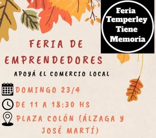 La feria de emprendedores es organizada por el colectivo Temperley Tiene Memoria y se desarrollará en el espacio público ubicado en la intersección de las calles Álzaga y José Martí. Los puestos estarán a disposición de 11 a 18.30 y la entrada para los vecinos es totalmente gratuita.