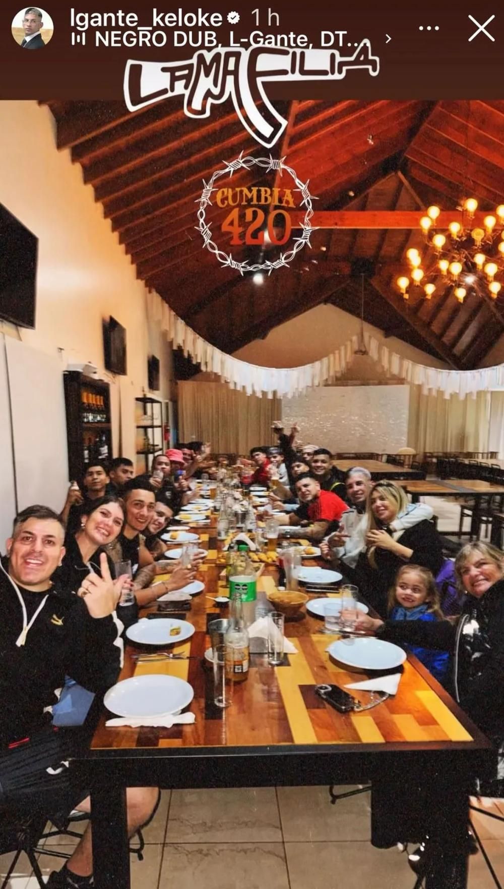 Mientras que este viernes por la mañana, L-Gante terminó de confirmar su nueva reconciliación con Nara al postear la postal del multitudinario asado que anoche disfrutó La Mafilia.