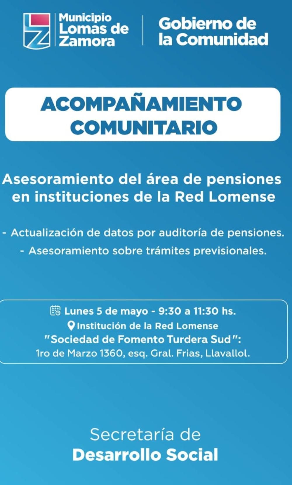 Los que quieran hacer consultas sobre algún trámite de pensión, actualización de datos por auditoría o consultar sobre gestiones previsionales deben acercarse este lunes de 9.30 a 11.30 al espacio ubicado en 1° de Marzo 1360, Llavallol.