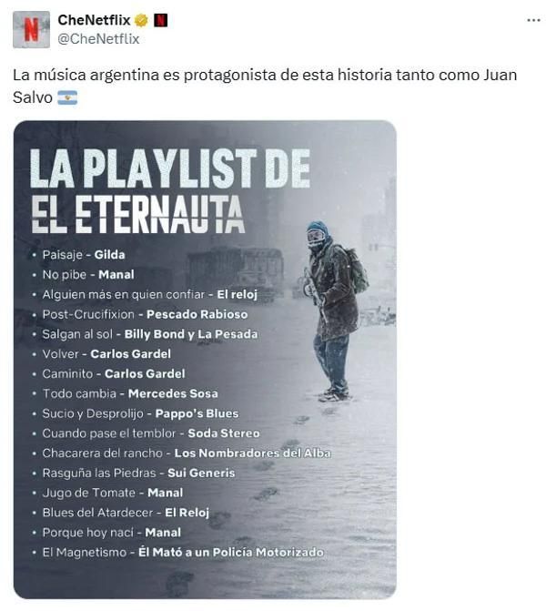 La playlist, difundida con una imagen promocional que muestra a El Eternauta caminando entre la nieve radiactiva, se convirtió en tendencia, celebrada por fans del cómic y de la música argentina. Es un puente entre la cultura pop y la memoria colectiva de generaciones que crecieron con la historieta y su mensaje.