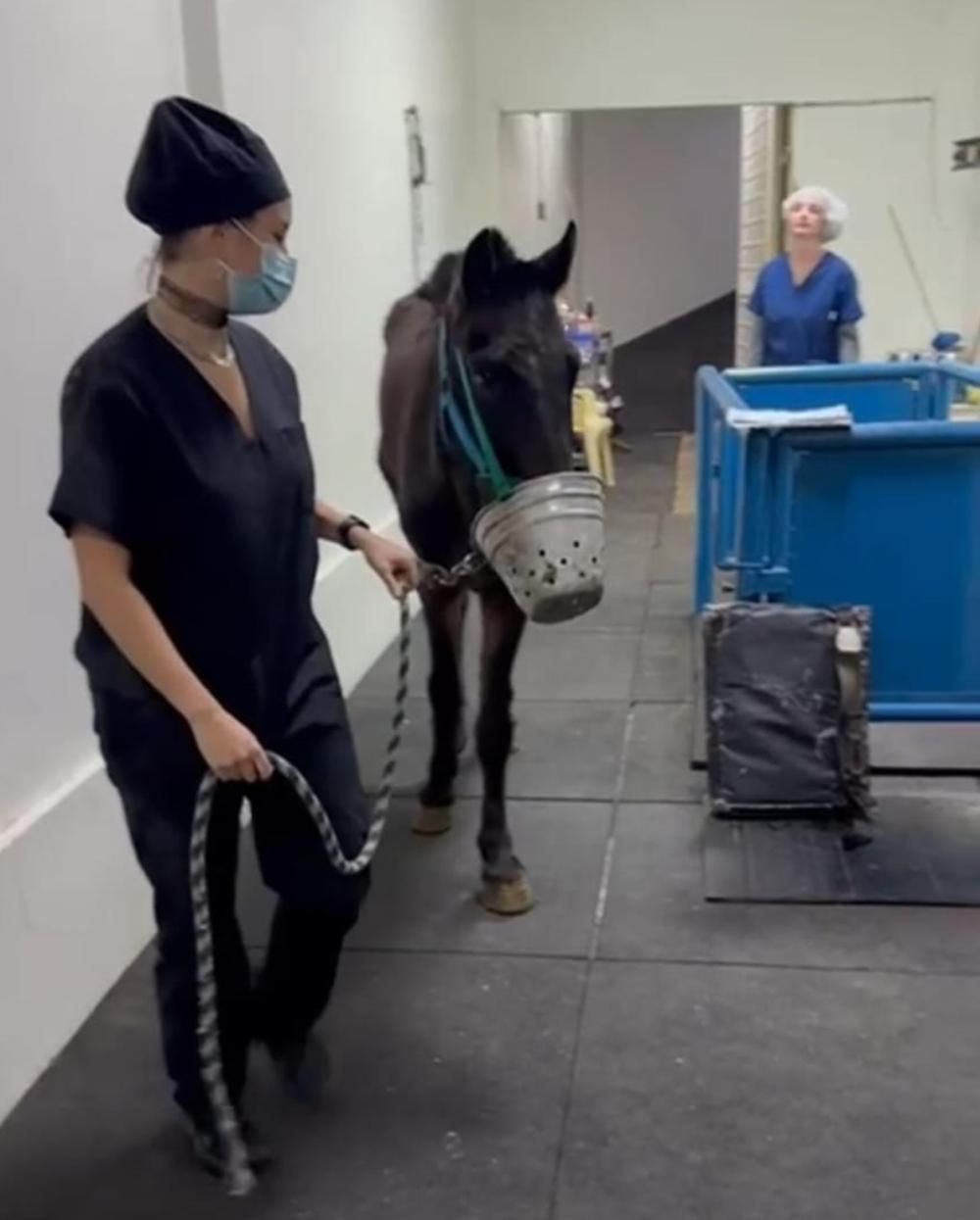 Lo más alarmante es que el caballo empezó a despedir residuos, como bolsas de nylon. Yésica reveló que "comía basura". Están esperando que pueda expulsar todo lo posible para no tener que operarlo.