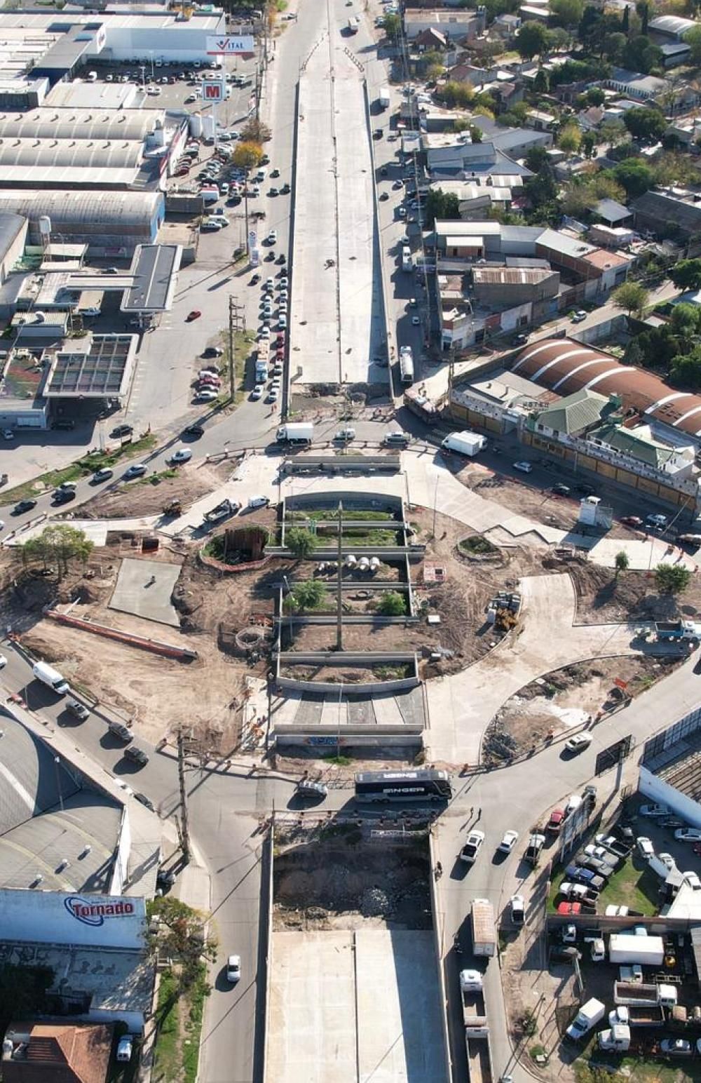 El paso bajo nivel tendrá una extensión de 1.206 metros de cruce vial a distinto nivel de la Av. Monteverde, por debajo de la Av. Hipólito Yrigoyen, con dos carriles por mano y dos puentes de hormigón.
