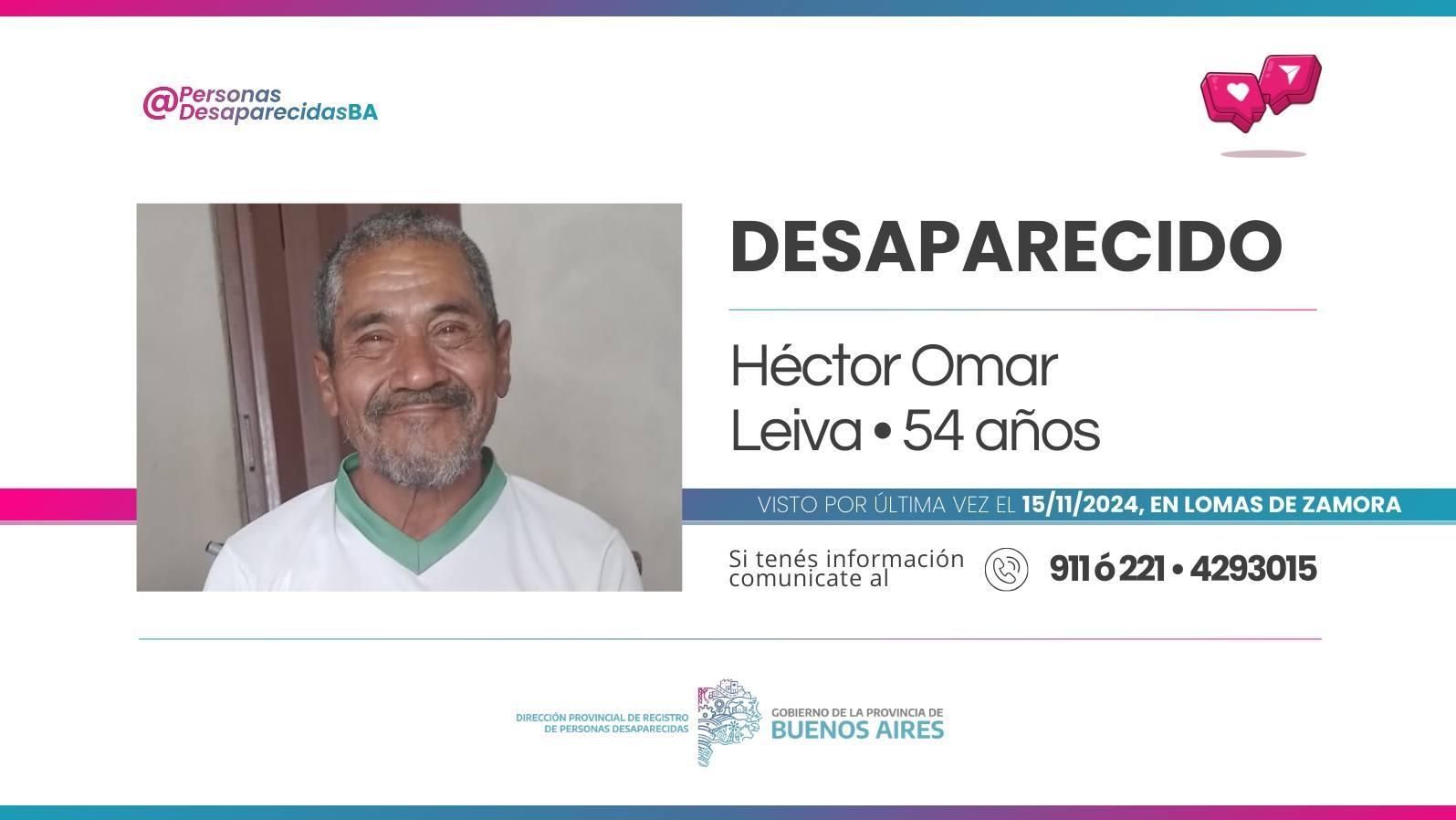 Héctor Omar Leiva tiene 54 años, es vecino del Barrio San Marta de Lomas de Zamora y hace seis meses que no hay rastro de él. Su desaparición está envuelta en misterio y su familia no sabe dónde más buscarlo.