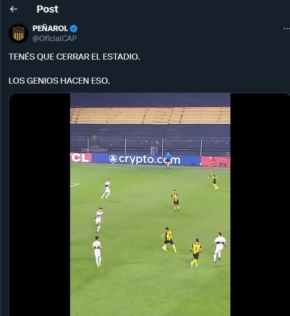 En sus redes sociales, Peñarol tomó una frase del entrenador argentino Alfio Basile, cuando después de un golazo de Lionel Messi frente a México por la Copa América 2007, dijo: "Tenés que cerrar el estadio, los genios hacen eso", en alusión al tremendo cañonazo del exmediocampista del Taladro.