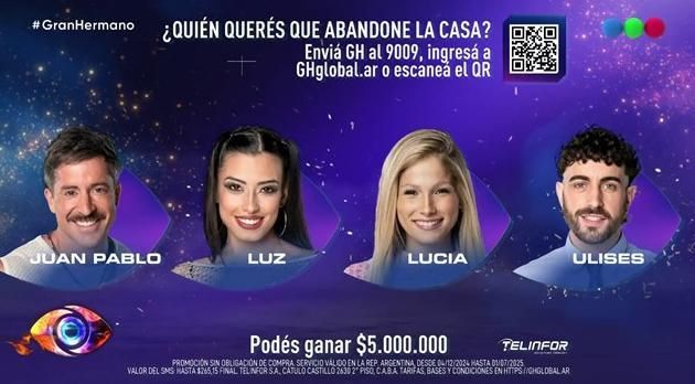 De esta forma, la eliminación de la casa más famosa del país estará entre Juan Pablo De Vigili, Lucía Patrone, Luz Tito y Ulises Apóstolo.