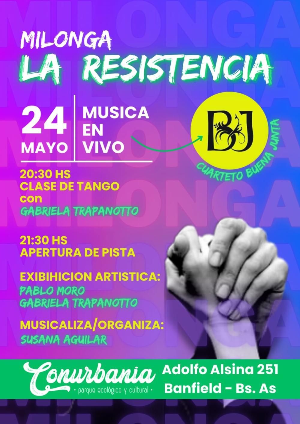 En una charla con el Diario La Unión, la profesora de tango y productora Susana Aguilar, quien organiza la Milonga La Resistencia, indicó que el evento se hará a partir de las 20.30 en el espacio que se encuentra situado en Alsina 251 (Banfield).