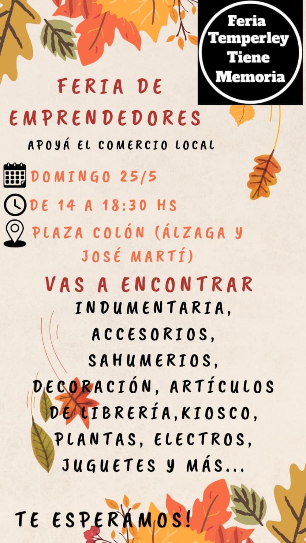 El colectivo Temperley Tiene Memoria realizará una nueva feria de emprendedores en la Plaza Colón, aunque esta edición será más que especial ya que estará ligada al Día de la Revolución de Mayo: mañana, decenas de emprendedores se reunirán a exponer distintas artesanías, mientras que los asistentes también podrán disfrutar de un taller de danzas folklóricas. La entrada es libre y gratuita.