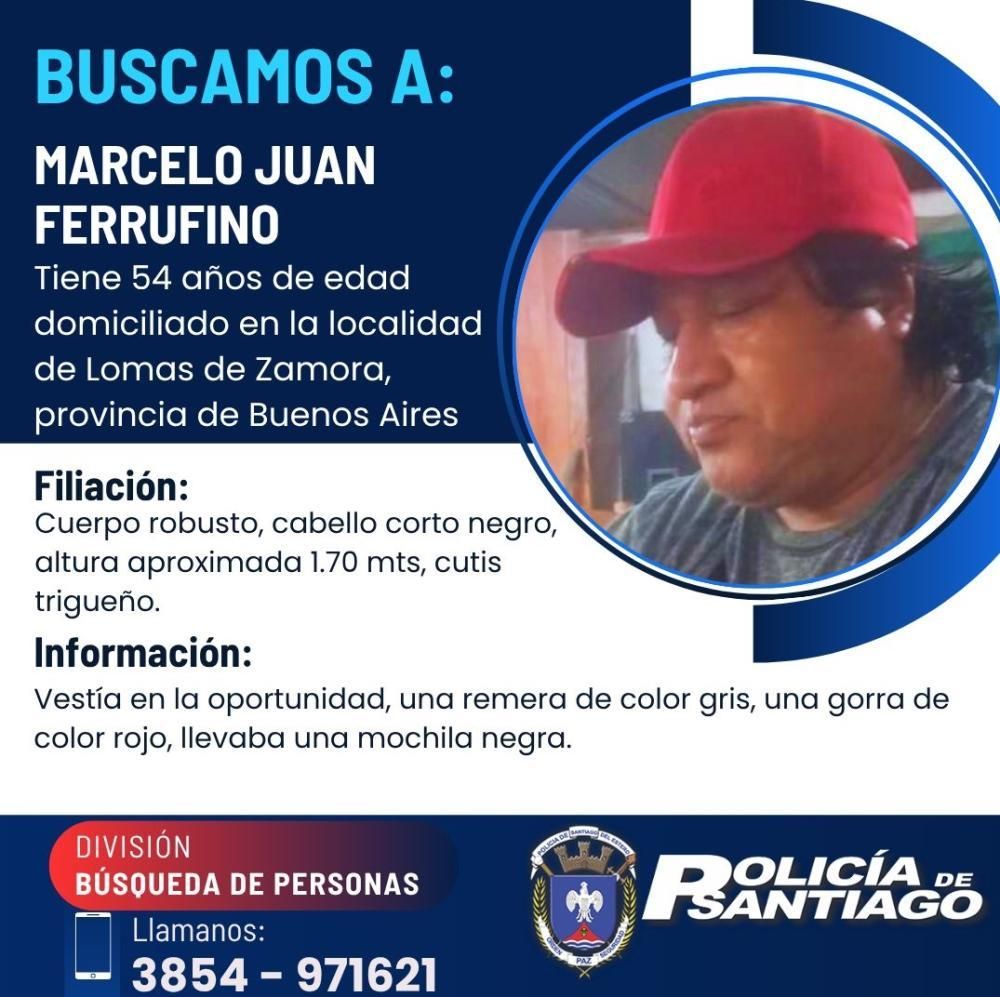 Efectivos de la División Búsqueda de Personas de la Policía de Santiago del Estero recibieron la denuncia por la desaparición de Ferrufino y empezaron a difundir su foto y sus datos para expandir la búsqueda.