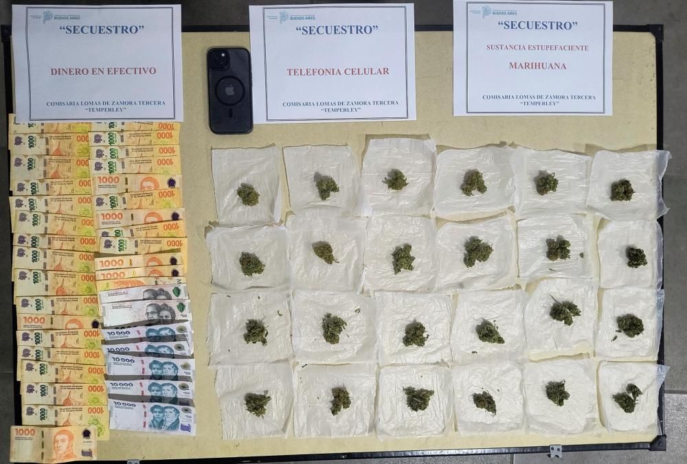 De acuerdo a lo determinado por los efectivos policiales, el sospechoso tenía una mochila con 24 envoltorios de nylon, con marihuana en su interior. Los mismos tenían un pesaje total de 44,6 gramos, $ 83 mil de dinero en efectivo y un teléfono celular.