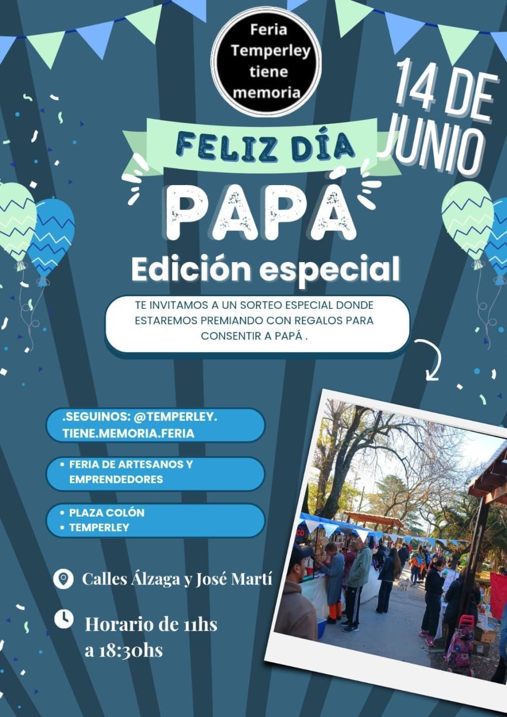 La feria se extenderá hasta aproximadamente las 18.30 y, en el transcurso del evento, se realizarán distintos sorteos: los vecinos podrán ganar premios relacionados al Día del Padre. La entrada es totalmente libre y gratuita.