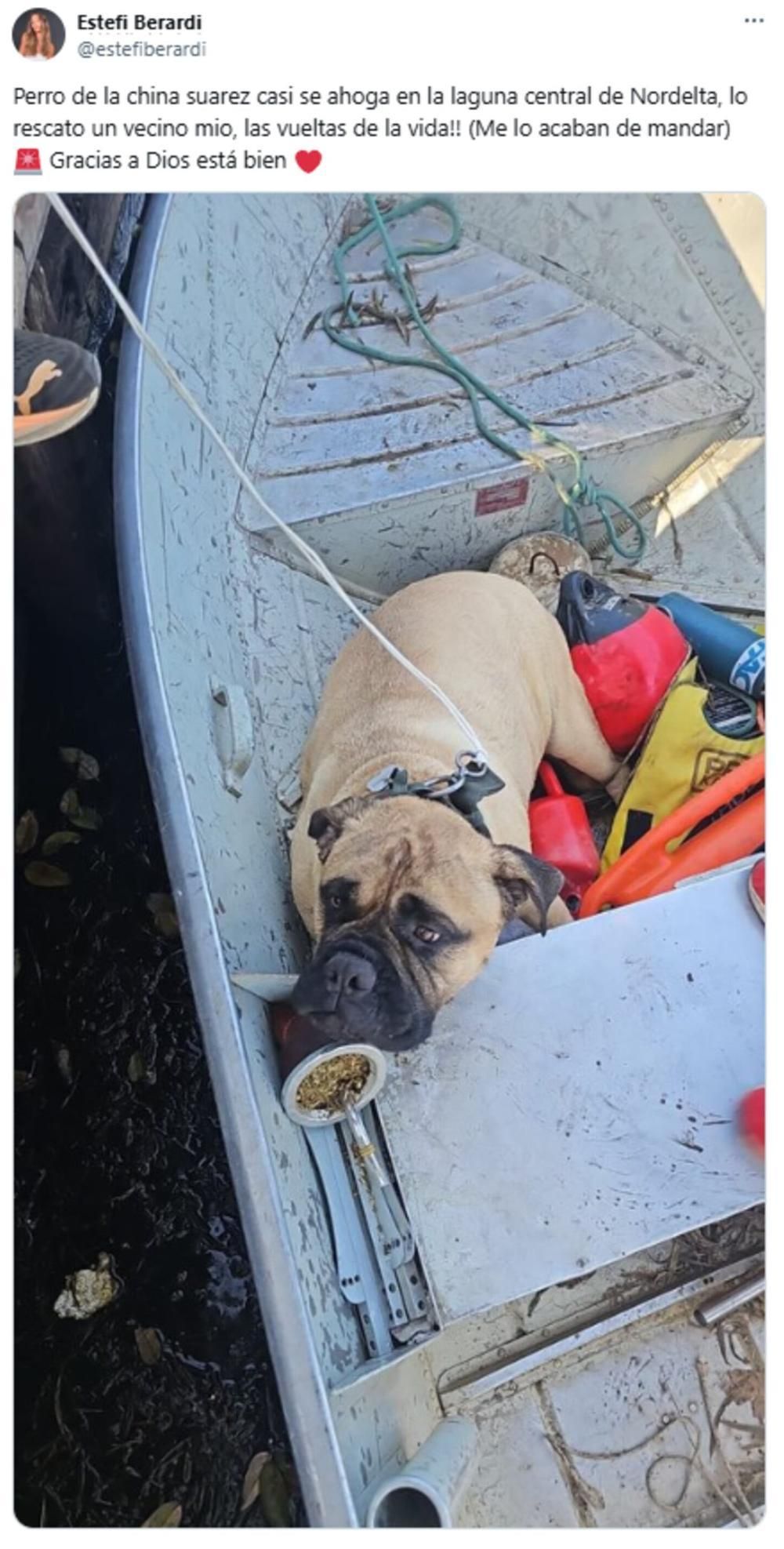 "El perro de la China Suárez casi se ahoga en la laguna central de Nordelta, lo rescató un vecino mío", escribió Estefi Berardi.