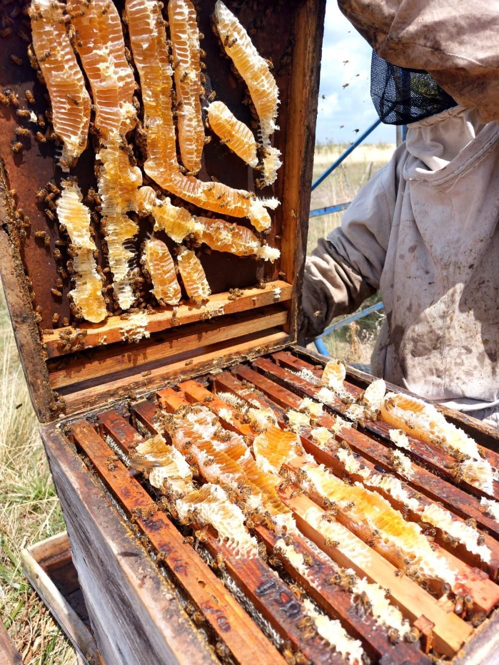 El trabajo de extracción suele durar varias horas ya que es muy artesanal. Hay que inspeccionar el lugar antes de hacer la labor y, para arrancar, se debe esperar a que la mayoría de las abejas se vaya de su hogar: cuando accedemos al panal, se lo corta cuidadosamente y se lo ata a un cuadro para el posterior traslado