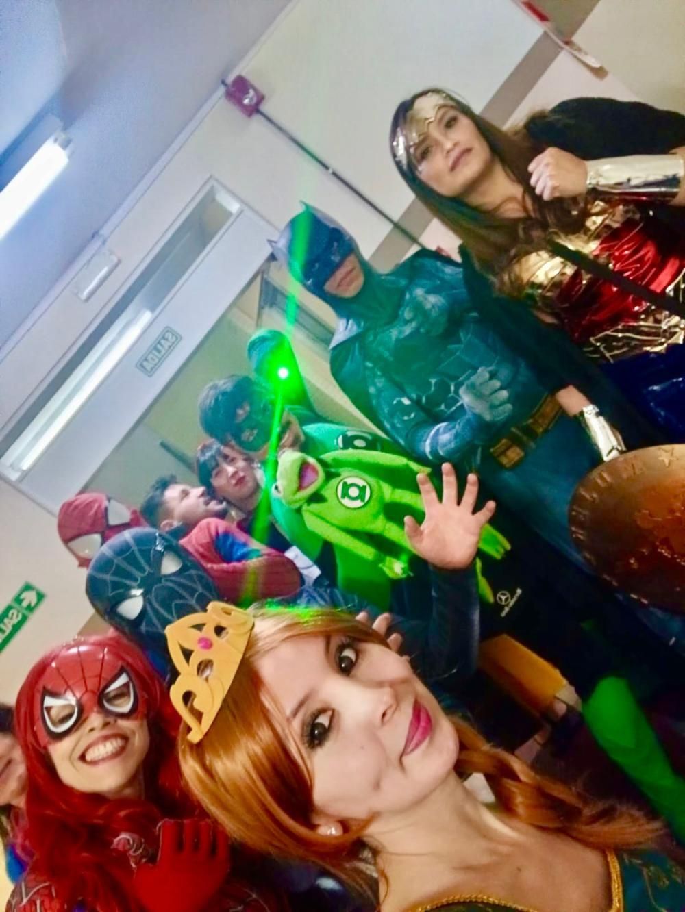 Vestidos de icónicos personajes (como Batman, Thor, Linterna Verde, el Hombre Araña, la Mujer Maravilla, Superchica y las princesas de Disney), el grupo solidario repartió golosinas y mucho amor a los pacientes y a sus respectivos padres que se encontraban en las distintas habitaciones.