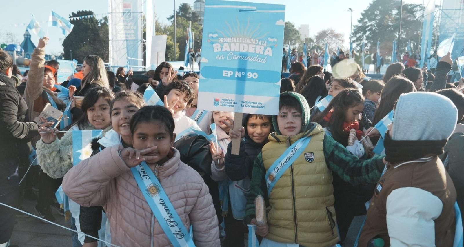 Más de 5.000 estudiantes de Lomas de Zamora realizaron en la mañana de este jueves la Promesa a la Bandera en un emocionante acto organizado por el Municipio en la Plaza Grigera.
