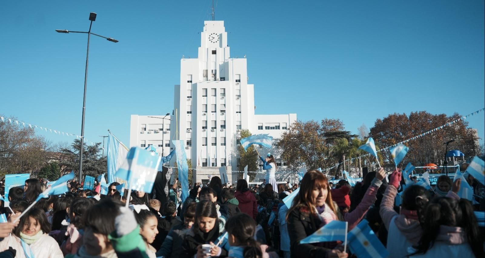 Más de 5.000 alumnos de 40 escuelas estuvieron en el acto organizado por el Municipio y compartieron la alegría y emoción de una jornada llena de celeste y blanco.