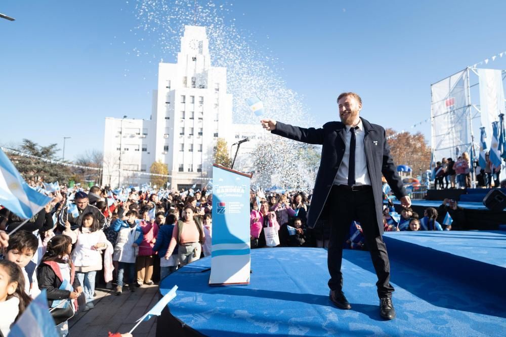 El Intendente de Lomas de Zamora, Federico Otermín, encabezó el acto por el Día de la Bandera en la Plaza Grigera, junto a su esposa, la ministra de Ambiente de la provincia de Buenos Aires, Daniela Vilar, y la Jefa de Gabinete del Municipio, Sol Tischik. Allí, más de 5.000 estudiantes de diferentes escuelas primarias de gestión estatal y privada; y de educación especial y de adultos prometieron lealtad a la insignia patria.