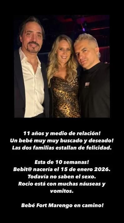 Según Ángel de Brito, "las dos familias estallan de felicidad" con la noticia, aunque por el momento Rocío Marengo y Eduardo Fort aún "no saben el sexo del bebé".