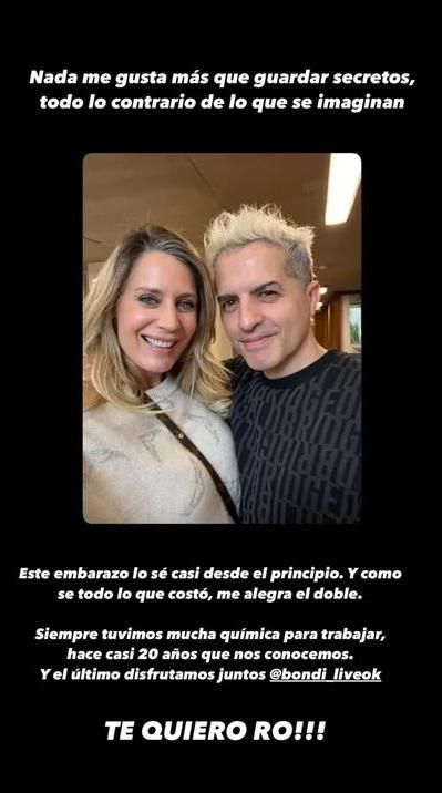 "Llegaron a las 10 semanas, ya lo puedo contar. Por primera vez va a ser mamá Rocío Marengo", confirmó el el periodista Ángel de Brito a través de sus historias de Instagram.