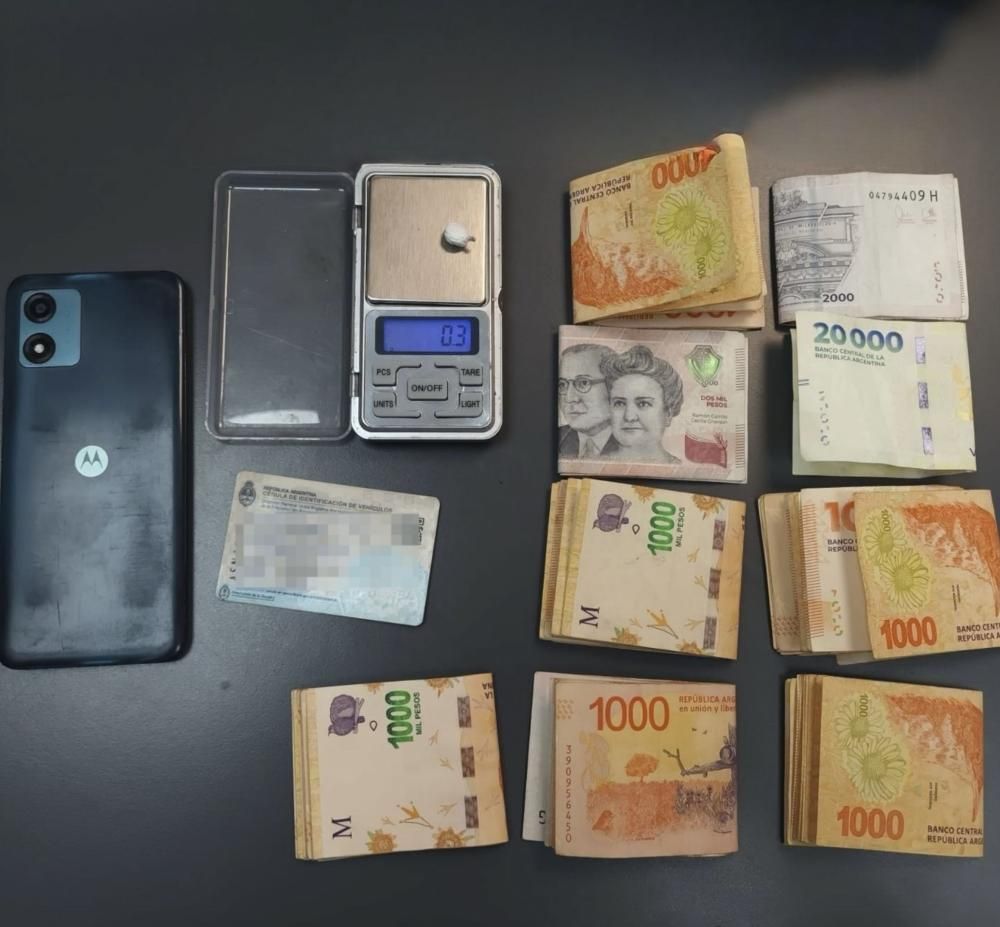 A su vez, el demorado llevaba tres gramos de cocaína en uno de bolsillos, un teléfono celular y $98 mil. Todo fue incautados junto al vehículo, un Toyota Etios. Se le formularon cargos por "desobediencia", como consecuencia de no respetar la prisión domiciliaria, y la formación de una nueva causa por falsificación de documento público e infracción a la Ley 23.737.