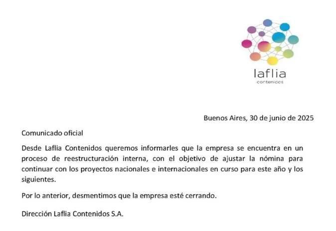 "Por lo anterior, desmentimos que la empresa esté cerrando", subraya el texto firmado por la Dirección de la productora.