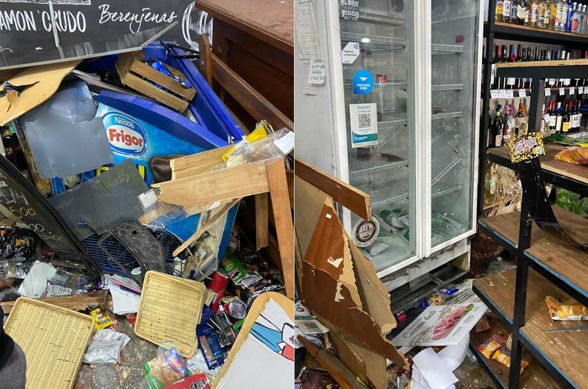 La Tranquera se dedica a vender fiambres, quesos, vinos y picadas. El accidente afectó seriamente sus instalaciones: la camioneta dañó heladeras, mostradores y varios productos de vidrio.