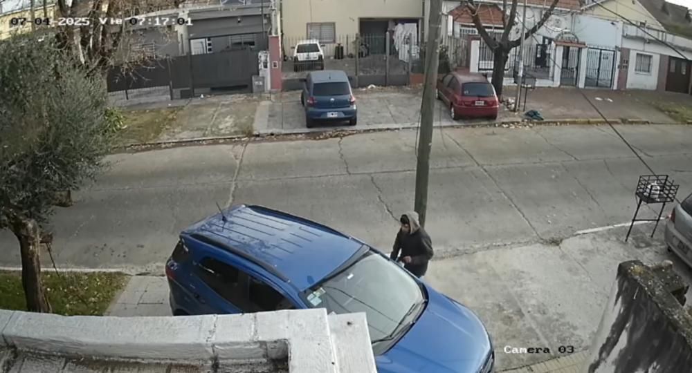 En un video al que tuvo acceso La Unión, grabado por una cámara de seguridad, se observa la presencia del delincuente, que forzaba la puerta de un vehículo sobre la calle General Iriarte, entre Bombero Ariño y José Mármol.