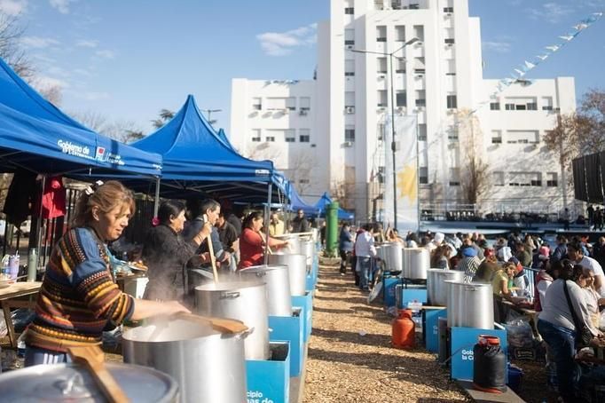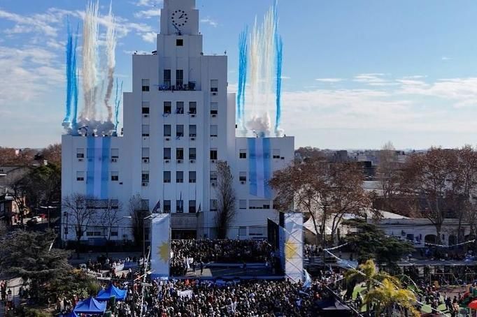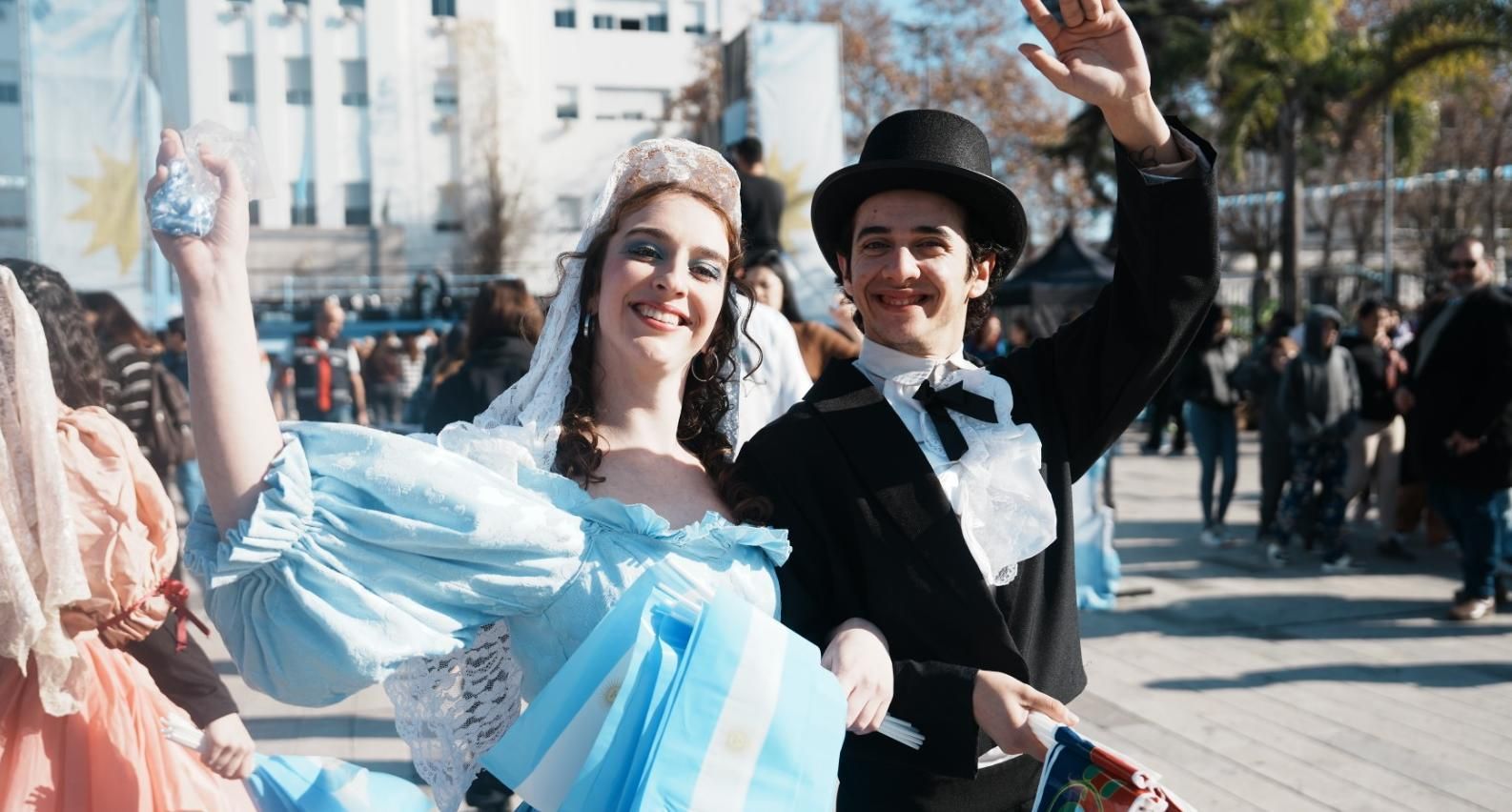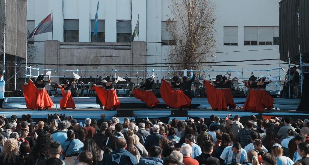 La tarde de este miércoles feriado se vistió de celeste y blanco para recibir a las familias y a los artistas que también fueron centrales: ballets de danzas y bandas de músicos brindaron shows folklóricos y acompañaron el clima primaveral en pleno invierno. Además hubo guiso y comidas tradicionales, performances artísticas y muchas banderas, banderines y escarapelas.