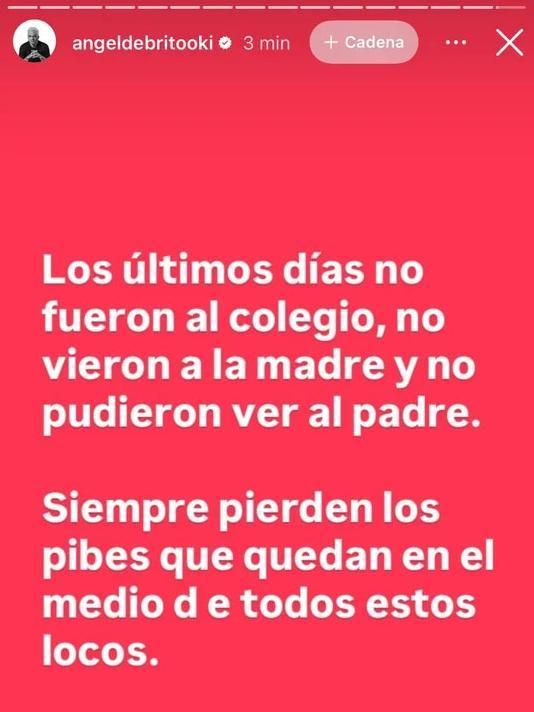 Por último, reflexionó: "Los últimos días no fueron al colegio, no vieron a la madre y no pudieron ver al padre. Siempre pierden los pibes que quedan en el medio de todos estos locos".