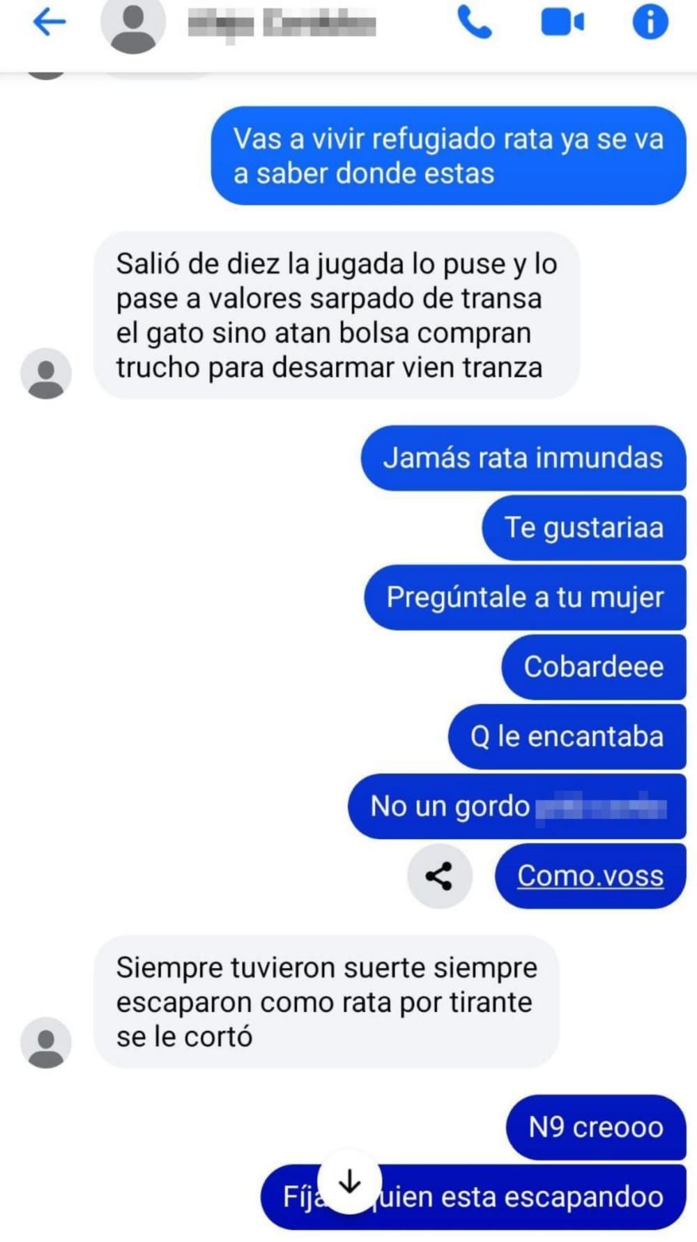 La conversación, plagada de insultos y burlas, fue compartida en redes sociales, para escrachar al presunto asesino y la impunidad con la que se manejaría en la clandestinidad.