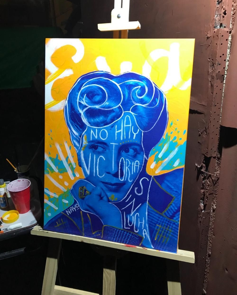 "No hay victoria sin lucha" fue el nombre que eligió Nayo, como es conocida Nayla en el ambiente artístico, para su obra de Evita, la cual nació a partir de una invitación de la organización Aconcagua, un espacio de militancia social y política de Lomas que, a través de su área cultural "Arte es Resistir", organizan eventos artísticos. "Ellos me habían invitado a participar pintando en vivo, y ahí fue donde me propuse investigar a fondo la figura de Evita para crear algo que dialogara con ese espíritu colectivo", contó la artista local.