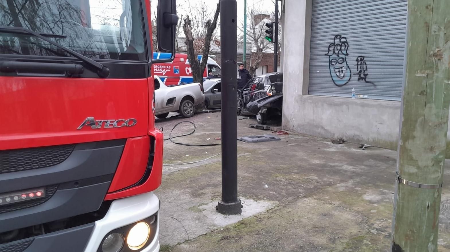 Por causas que no trascendieron, los vehículos impactaron con mucha violencia en la mencionada esquina y sufrieron importantes daños. El auto se subió a la vereda y chocó contra el frente de un local, mientras que la camioneta perdió una rueda y terminó con el frente destruido.