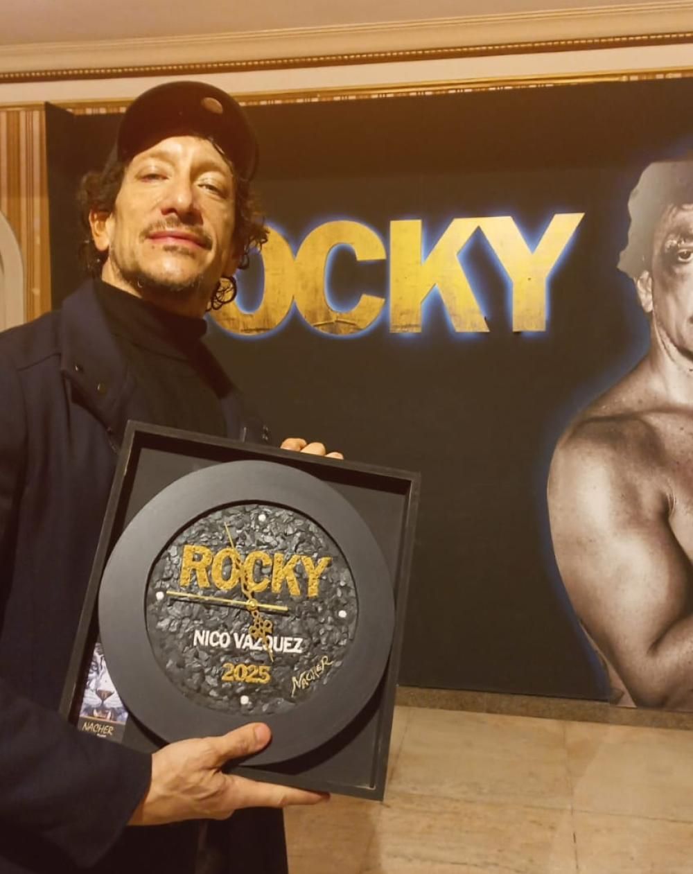 "Saqué las entradas para ir a ver la obra con mi mujer porque creo que el personaje de Rocky marcó a mi generación y a muchas otras también. Hay un antes y un después de ese film y quise agradecer de alguna manera a Nico por hacer el tremendo esfuerzo de traer un espectáculo de esa talla a la calle Corrientes", comenzó contando el artista de lomas que se especializa en el arte con piedras.
