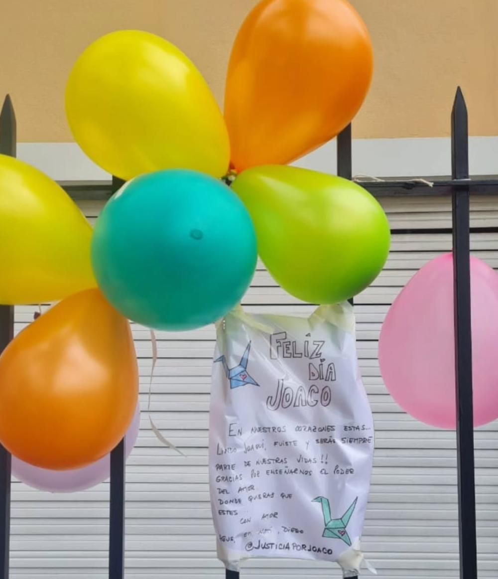 Para acompañarla, varios vecinos colocaron carteles en su puerta pidiendo "Justicia por Joaco". Incluso, decoraron sus puertas con globos. Otros, manifestaron su apoyo a la madre de la víctima. "Natalia estamos con vos", escribieron, y también dejaron un mensaje para el homicida: "Alejandro Ruffo, no sos bienvenido. Asesino".